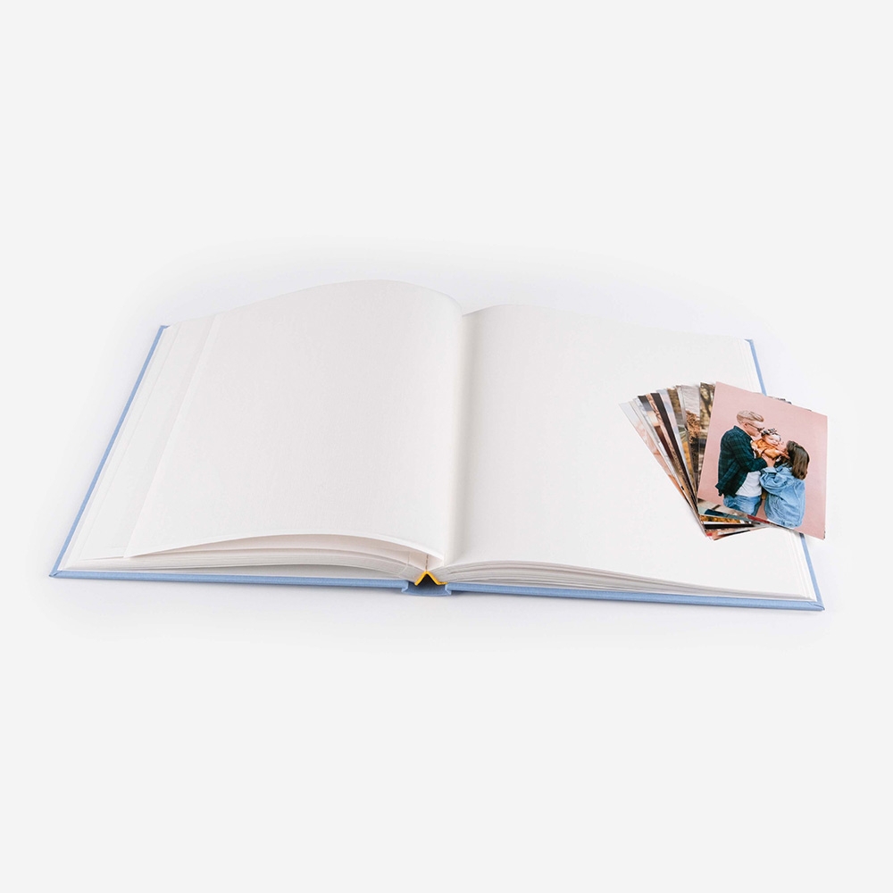 Os Álbuns Analógicos em Linho com Janela são compostos por páginas para colares as fotos com stickers.