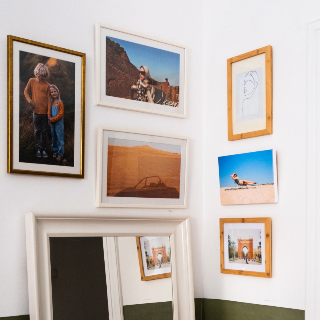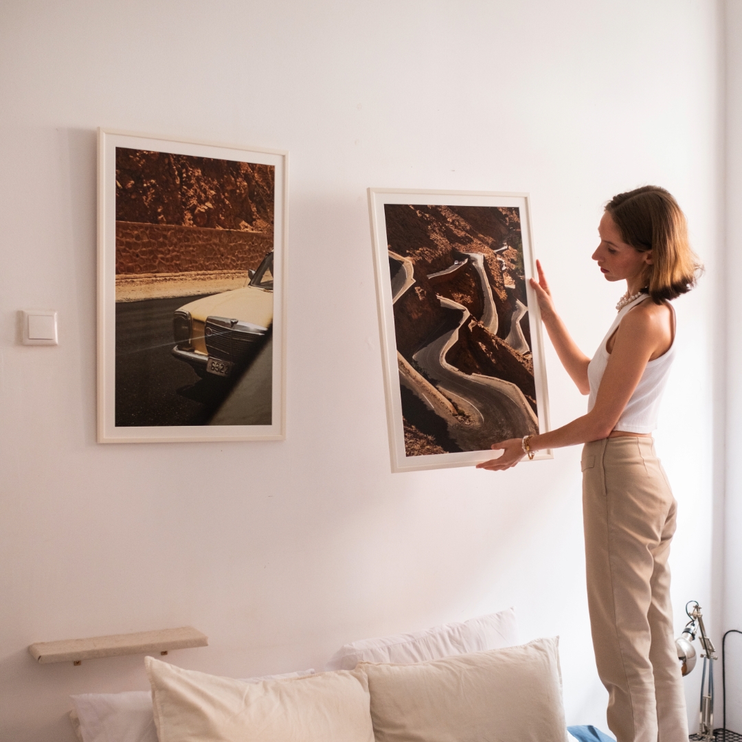 Lembraste daquela viagem de verão incrível? Transforma as tuas fotos favoritas em molduras de parede. Escolhe uma parede vazia e cria uma galeria de arte pessoal com as melhores memórias das tuas férias. Usa molduras de diferentes tamanhos para um efeito eclético e moderno.