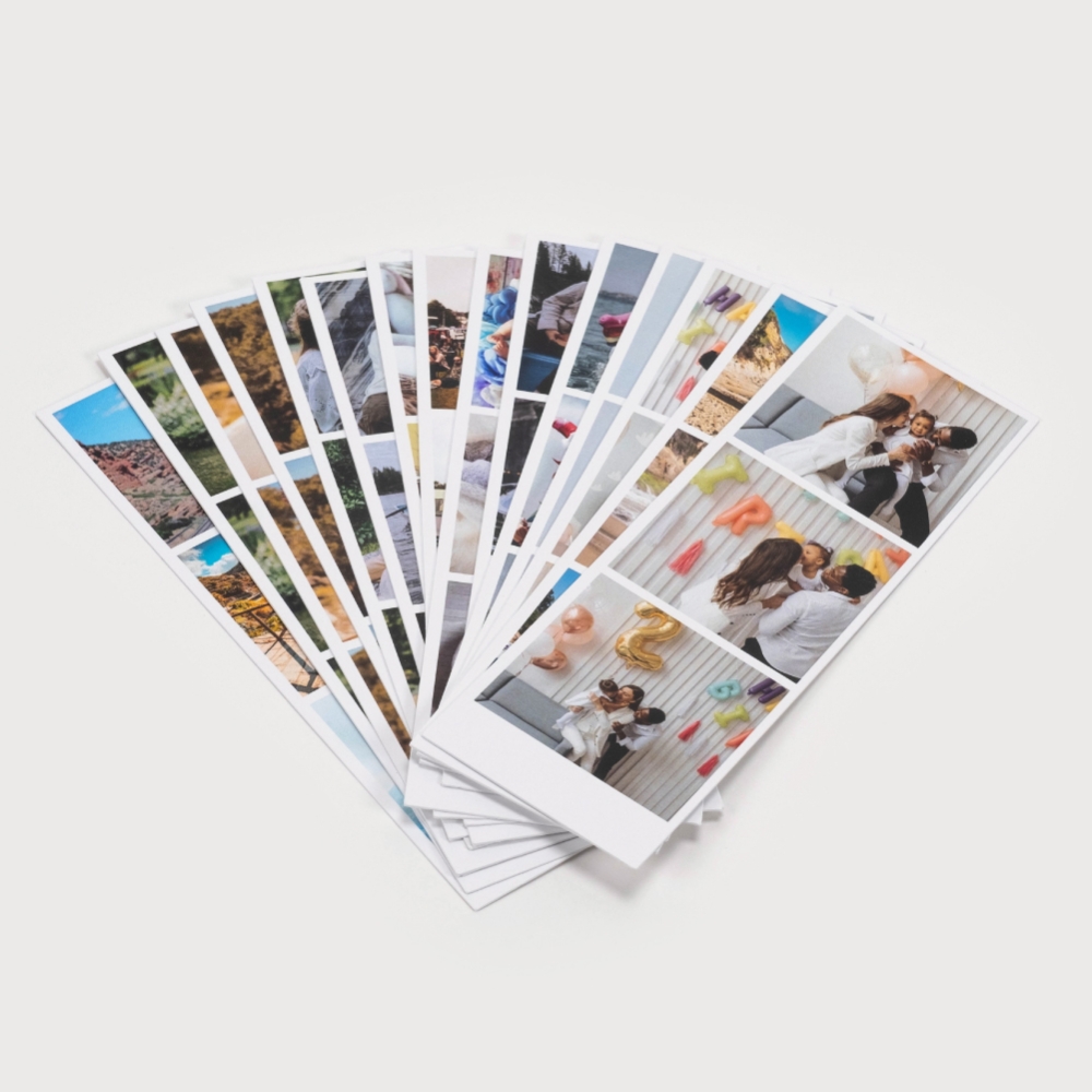 Podes adicionar 3 fotos por cada tira, o que permite que contes uma história visual completa numa única impressão. Podes combinar fotos de diferentes momentos ou criar uma sequência cronológica que retrate um percurso especial.